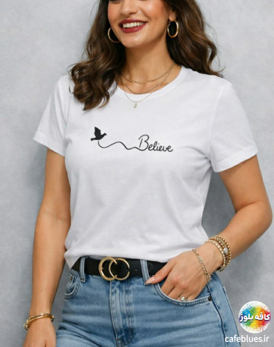 تیشرت دخترانه جنس نخ پنبه مدل کبوتر نوشته