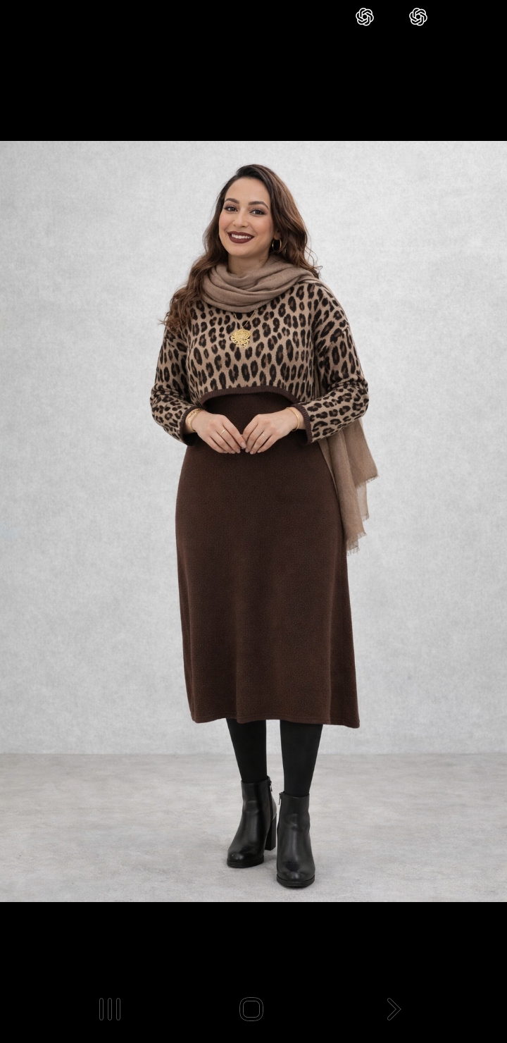 ست بافت دو تیکه پلنگی تک رنگ قهوه ایناموجود